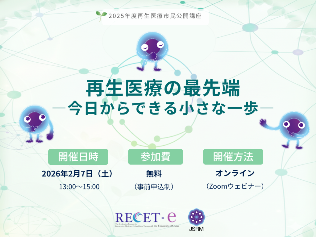 2026年2月7日(土)開催【市民公開講座】再生医療の最先端―今日からできる最初の一歩―